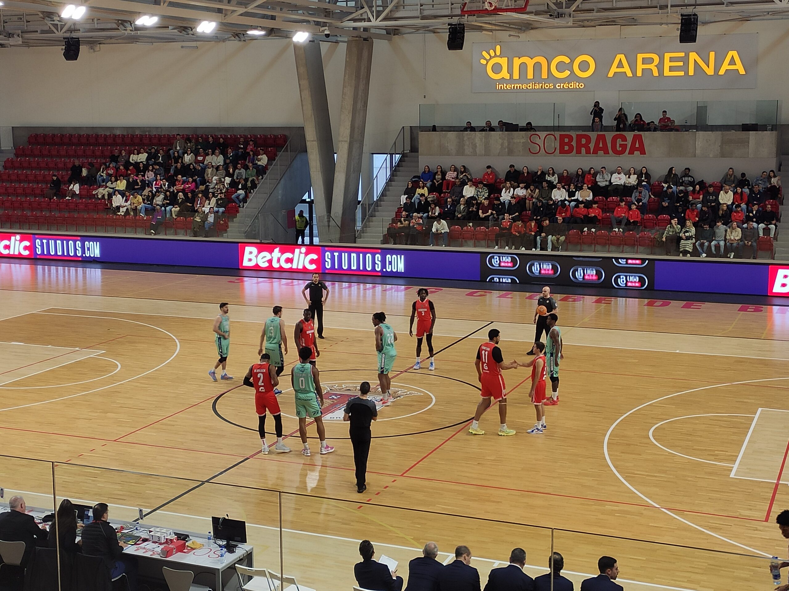 O jogo continuou intenso. A UD Oliveirense chegou a adiantar-se novamente no marcador, mas o SC Braga chegou ao intervalo a ganhar por 37-33.